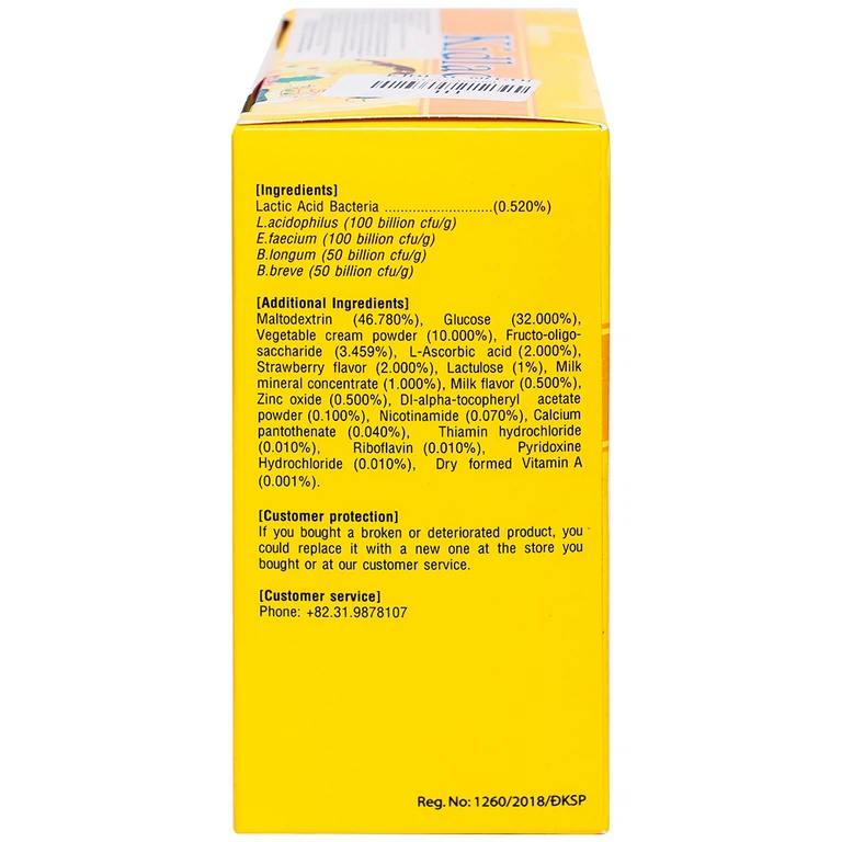 Sản phẩm Kidlac gồm 4 loại vi khuẩn có lợi lactobacillus acidophilus, enterococcus faecium, bifidobacterium longum, bifidobacterium giúp cải thiện các rối loạn đường ruột lâu dài và thường xuyên như táo bón , tiêu chảy, các vấn đề thường gặp ở hệ tiêu hóa. Đồng thời, kích thích tiêu hóa cho trẻ biếng ăn ăn ngon miệng hơn.