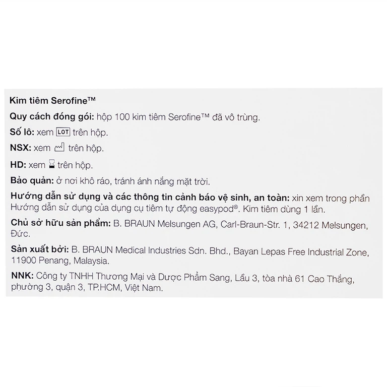 Kim tiêm Serofine Needles dùng cùng bút tiêm tiểu đường, tiêm dưới da theo hướng dẫn từ chuyên gia y tế.