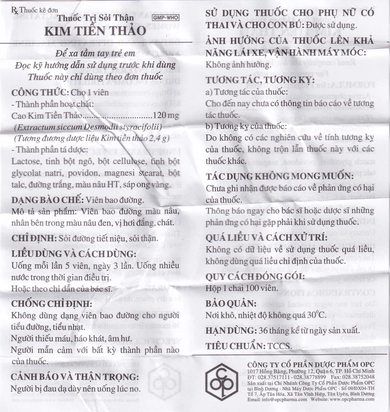 Thuốc Kim Tiền Thảo OPC được chỉ định dùng điều trị sỏi đường tiết niệu, sỏi thận .