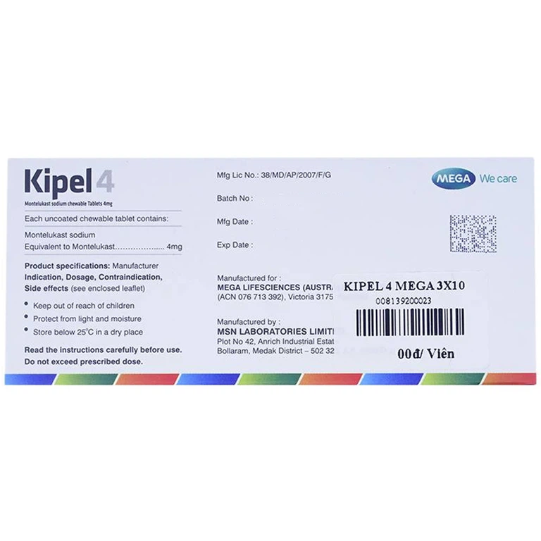 Kipel 4 mg dạng viên nhai: Nhai kỹ và uống với nước.