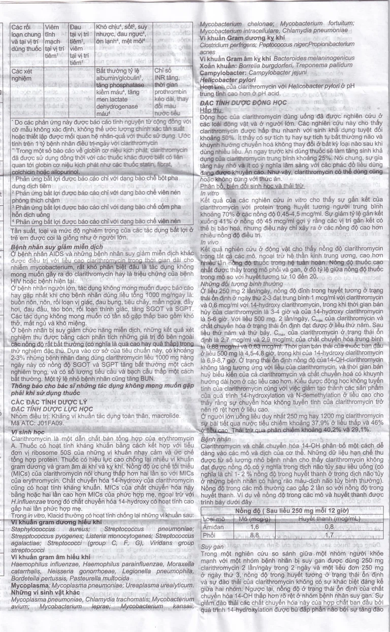 - Điều trị các bệnh nhiễm trùng MAC ở những bệnh nhân AIDS cần được tiếp tục, khi thấy có lợi về lâm sàng và vi sinh vật. Clarithromycin nên được sử dụng kết hợp với các thuốc kháng lao khác.