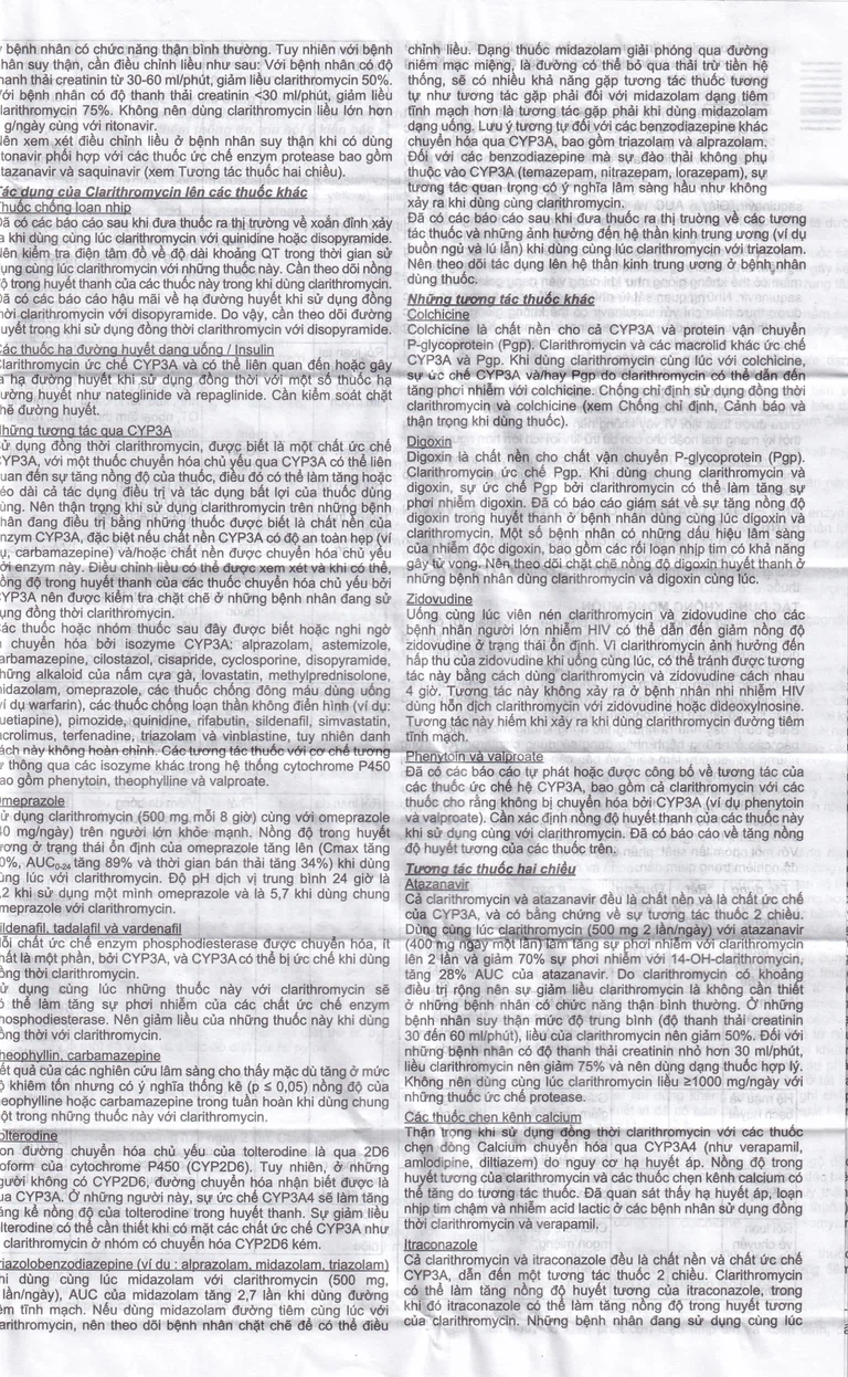Giống như những kháng sinh macrolide khác, việc sử dụng Clarithromycin ở những bệnh nhân uống đồng thời với những thuốc được chuyển hóa bởi hệ thống sắc tố tế bào P450 có thể làm tăng nồng độ những thuốc đó trong huyết thanh.