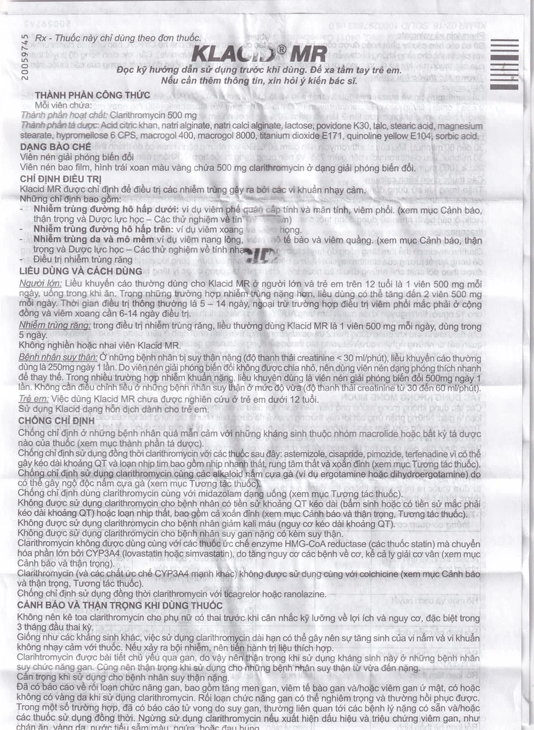 Việc dùng Klacid MR chưa được nghiên cứu ở trẻ em dưới 12 tuổi.