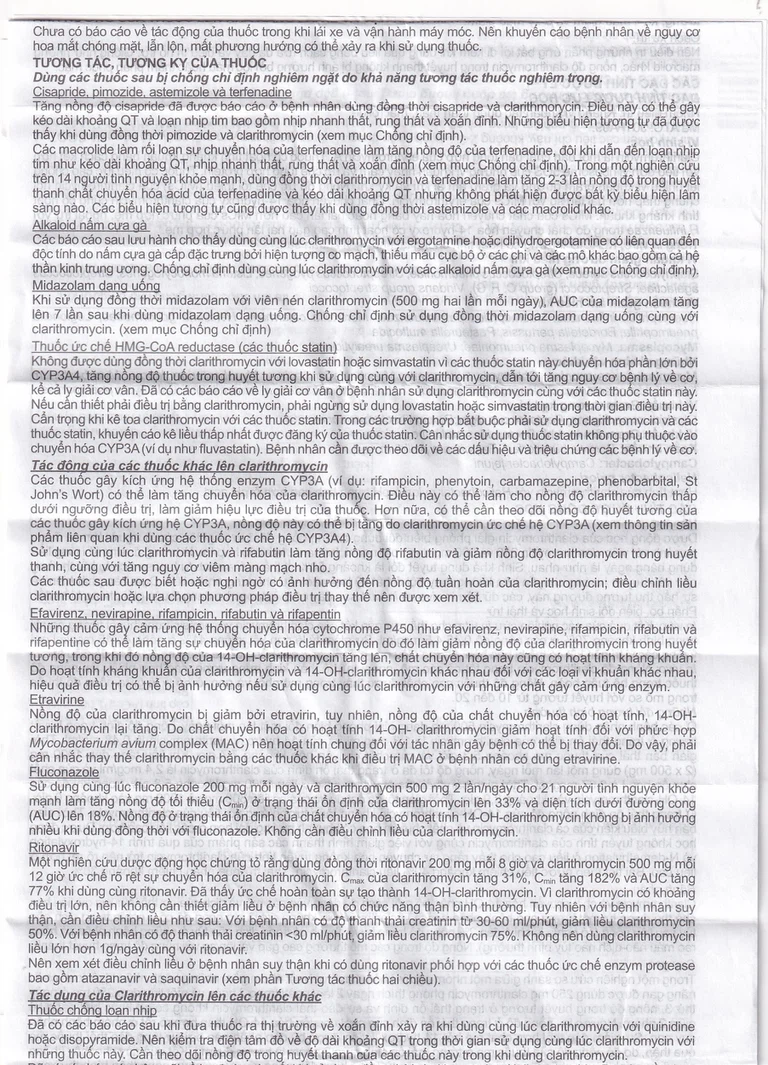 Chống chỉ định sử dụng đồng thời clarithromycin với astemizole, cisapride, Dimozide và terfenadine (xem mục Chống chỉ định)