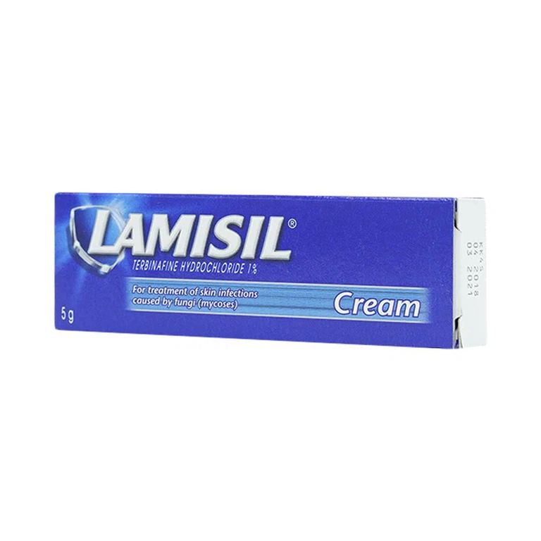 Vô ý nuốt phải 1 tuýp kem Lamisil 30g chứa 300mg terbinafine hydrochloride tương đương với uống một viên Lamisil 250mg (liều đơn vị dùng đường uống ở người lớn). Những tác dụng bất lợi này bao gồm nhức đầu, buồn nôn, đau vùng thượng vị và chóng mặt.