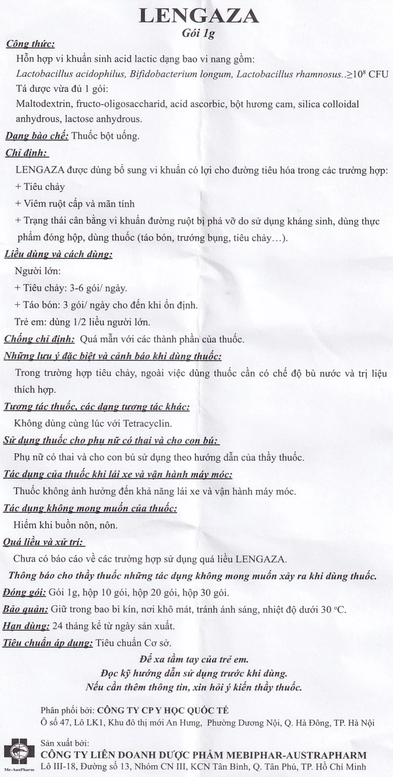 Thuốc Lengaza Mebiphar 30 gói dùng đường uống.