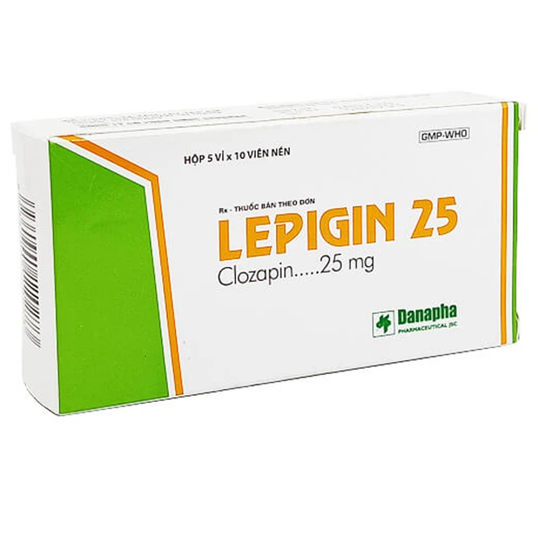 Thuốc Lepigin 25mg là sản phẩm của Công ty Cổ phần Dược Danapha chứa hoạt chất Clozapin có tác dụng trong điều trị bệnh tâm thần phân liệt mãn tính năng tiến triển từ ít nhất là 2 năm) trong trường hợp kháng trị (không thuyên giảm trên lâm sàng và xã hội mặc dù đã kê toa ít nhất 2 loại thuốc an thần kinh liều cao ít nhất 6 tuần) hoặc không dung nạp chủ yếu với các loại thuốc an thần kinh cổ điển.