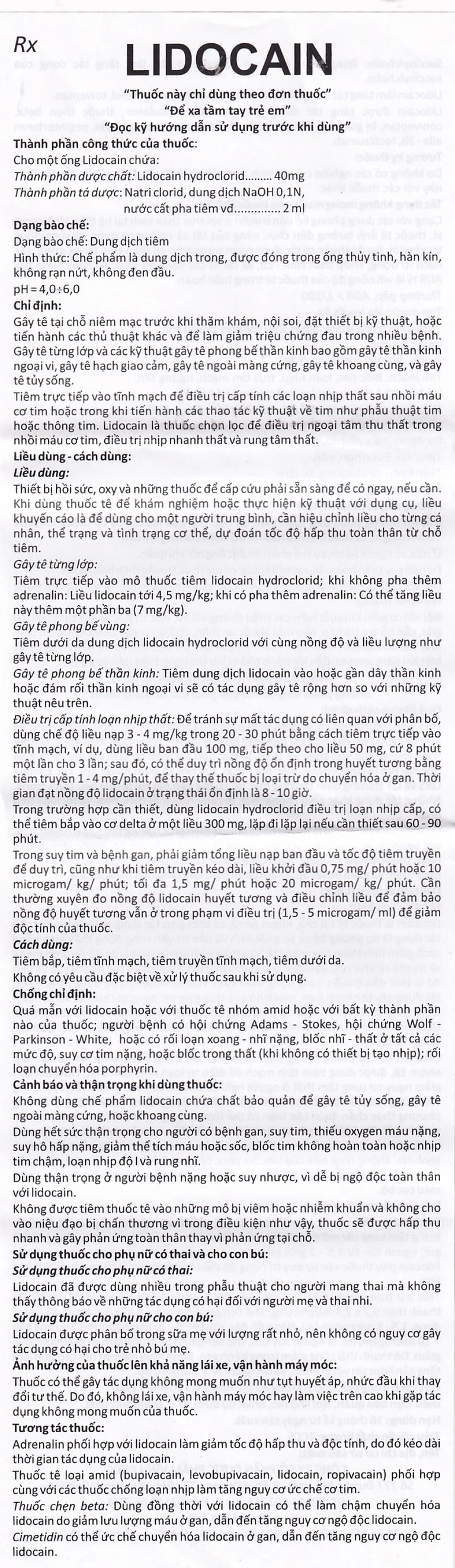 Cách dùng Dung dịch tiêm Lidocain 40mg/2ml