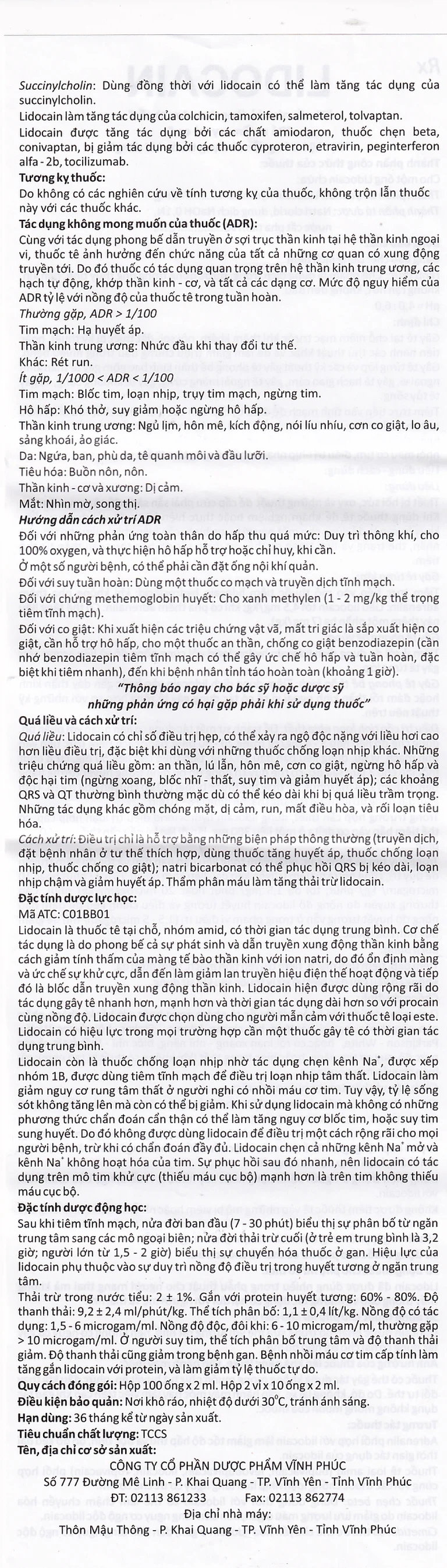 - Sucinylcholin: Dùng đồng thời với lidocain có thể làm tăng tác dụng của sucinylcholin.