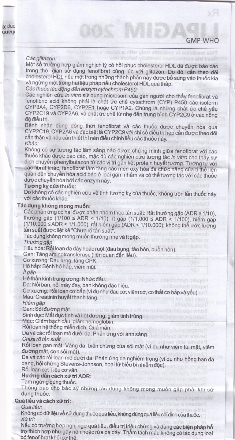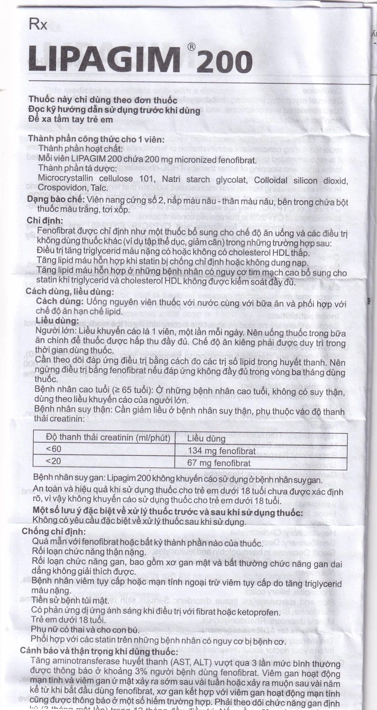 Bệnh nhân suy gan: Lipagim 200 không khuyến cáo sử dụng ở bệnh nhân suy gan.