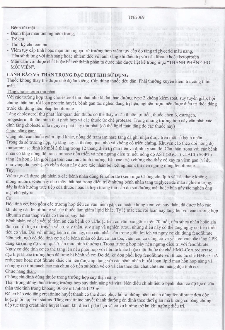 Các chất ức chế HMG – CoA reductase và các fibrat khác: Nguy cơ nhiễm độc cơ nghiêm trọng tăng lên nếu fenofibrate được sử dụng đồng thời với các chất ức chế HMG – CoA reductase hoặc các fibrat khác. Liệu pháp phối hợp như vậy nên được sử dụng một cách thận trọng và bệnh nhân được theo dõi chặt chẽ về các dấu hiệu nhiễm độc cơ.