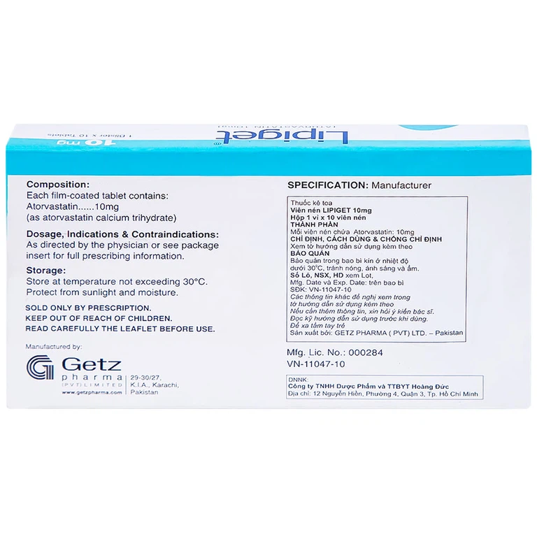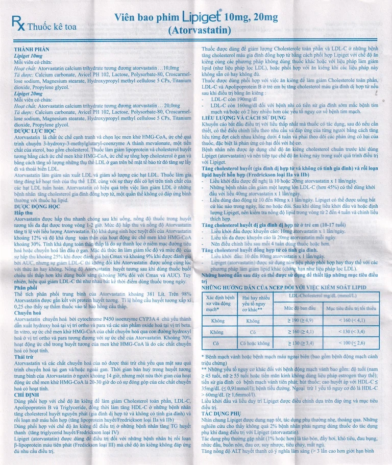 Công dụng của Viên nén Lipiget 10mg