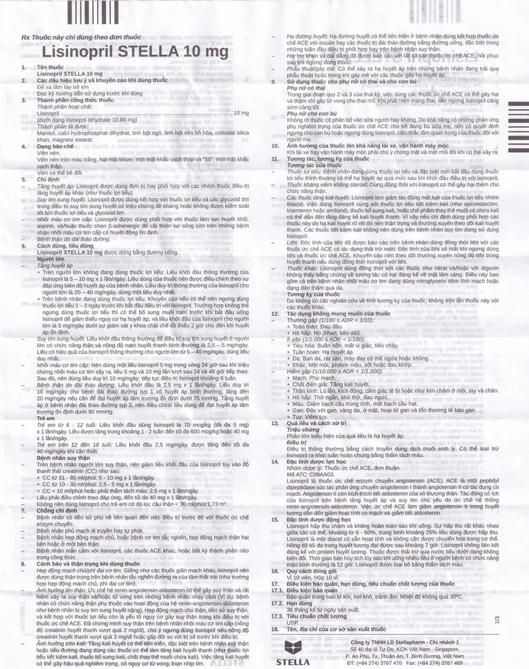 Lisinopril STELLA 10 mgđược dùng bằng đường uống.