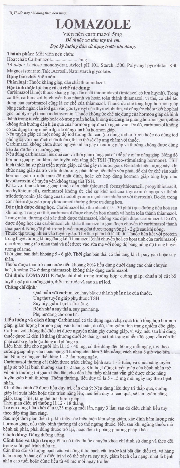 LOMAZOLE được chỉ định trong trường hợp: Cường giáp, chuẩn bị cắt bỏ tuyến giáp do cường giáp, điều trị trước và sau xạ trị iod.