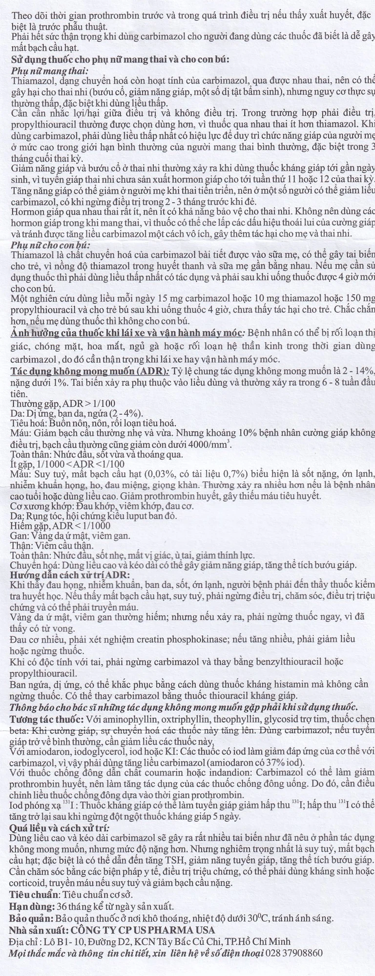 - Quá mẫn với carbimazol hay bất cứ thành phần nào của thuốc.