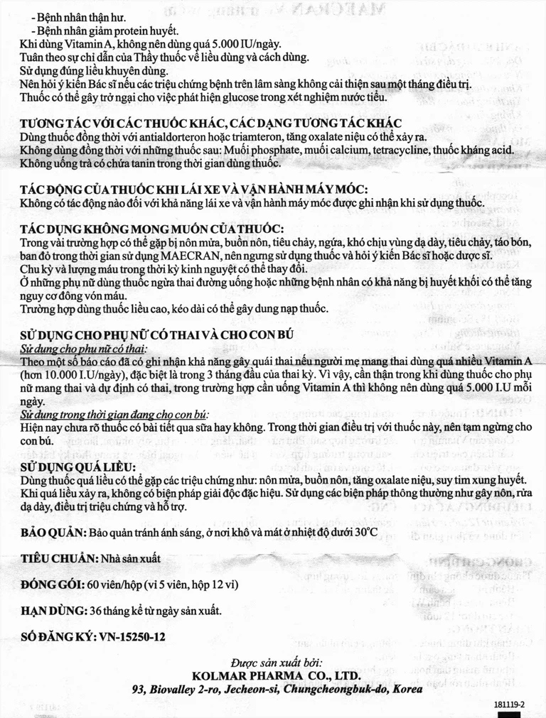 Thông báo cho bác sĩ và dược sĩ nếu bạn bị dị ứng với Maecran, bất kỳ loại thuốc nào khác hoặc bất kỳ thành phần trong thuốc. Bạn cũng có thể hỏi dược sĩ để biết danh sách các thành phần.