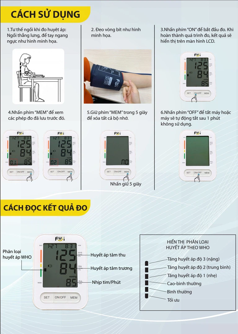 - Bộ nhớ: Lưu lại 90 lần đo cuối cùng