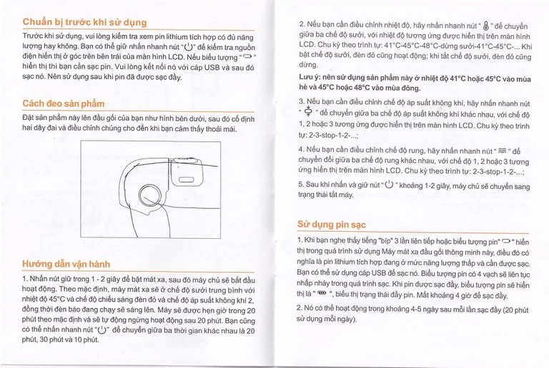- Làm nóng nhiệt độ không đổi 42 độ C, làm dịu mỏi cơ đầu gối.