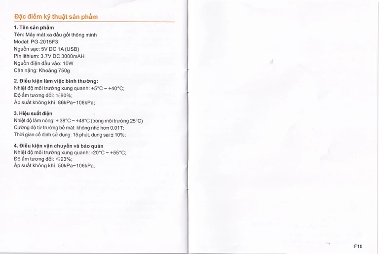 - Pin lithium: 3.7V DC 3000mAH;