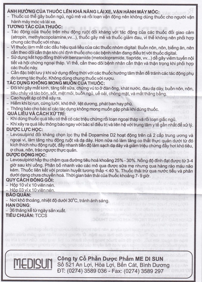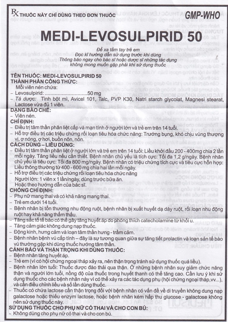 Cách dùng Viên nén Medi-Levosulpirid 50