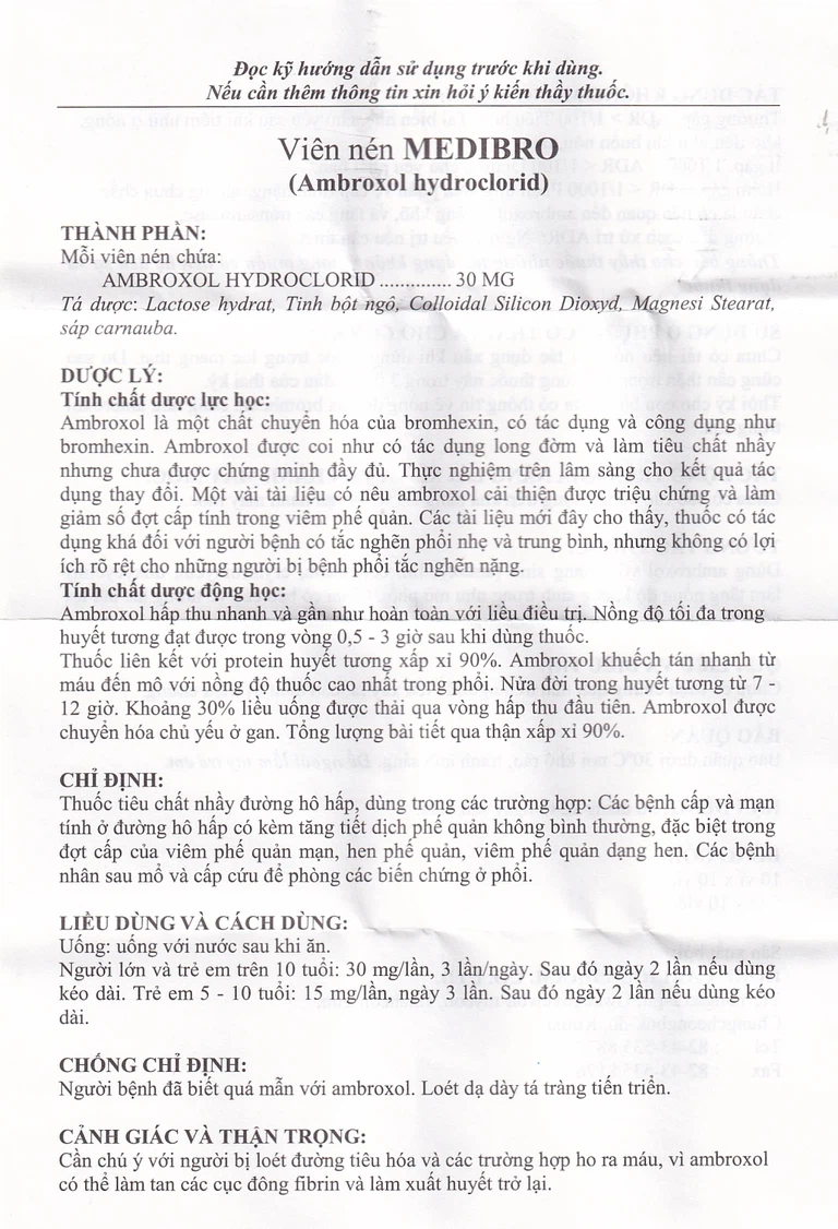 Thuốc Medibro Tab là thuốc tiêu chất nhầy đường hô hấp, dùng trong các trường hợp: