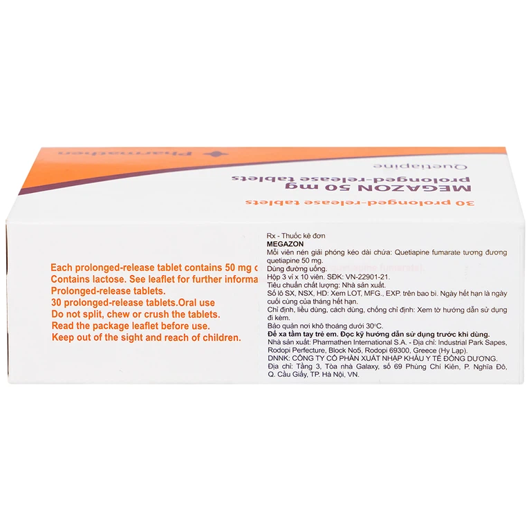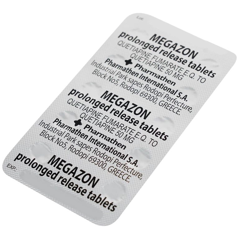 Thuốc Megazon 50mg prolonged-release tablets Pharmathen điều trị tâm thần phân liệt (3 vỉ x 10 viên)