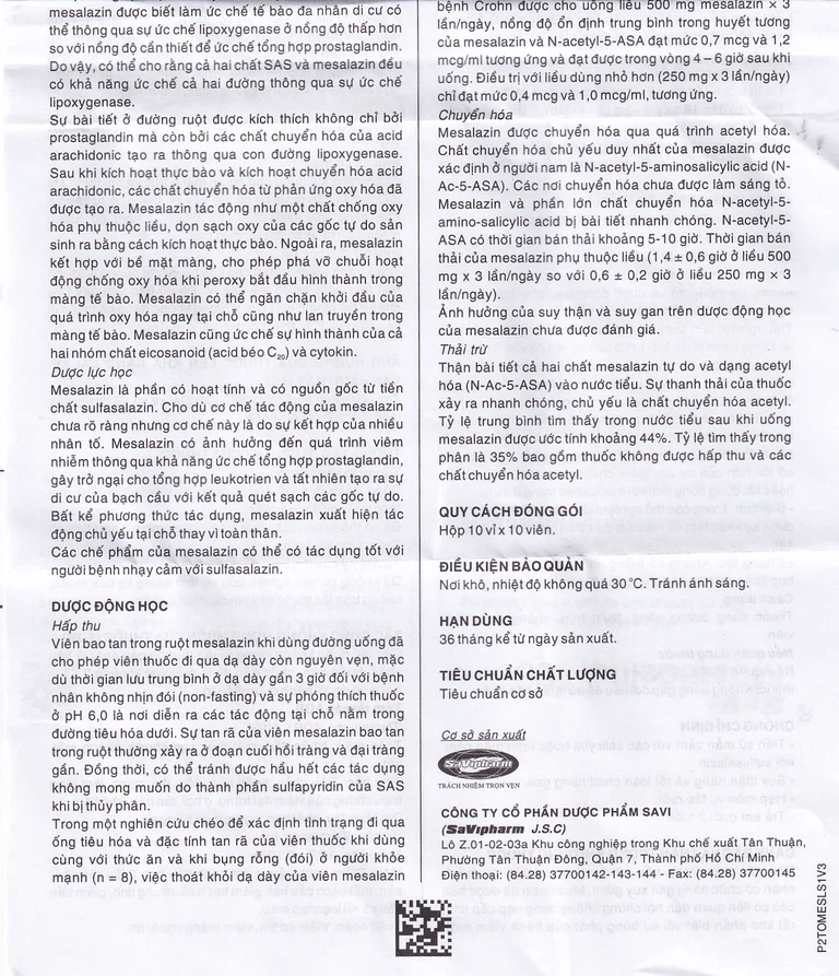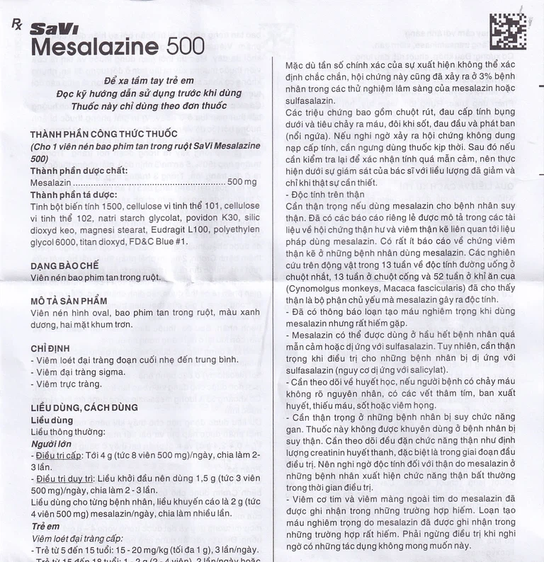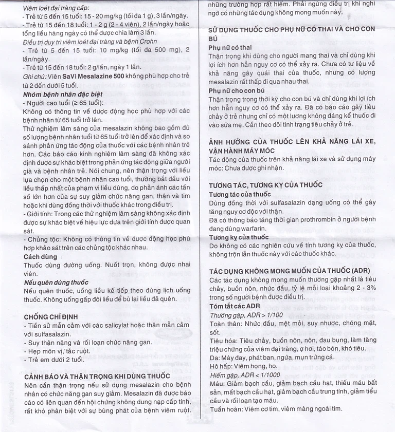 Ghi chú: Viên SaVi Mesalazine 500 không phù hợp cho trẻ từ 2 đến dưới 5 tuổi.