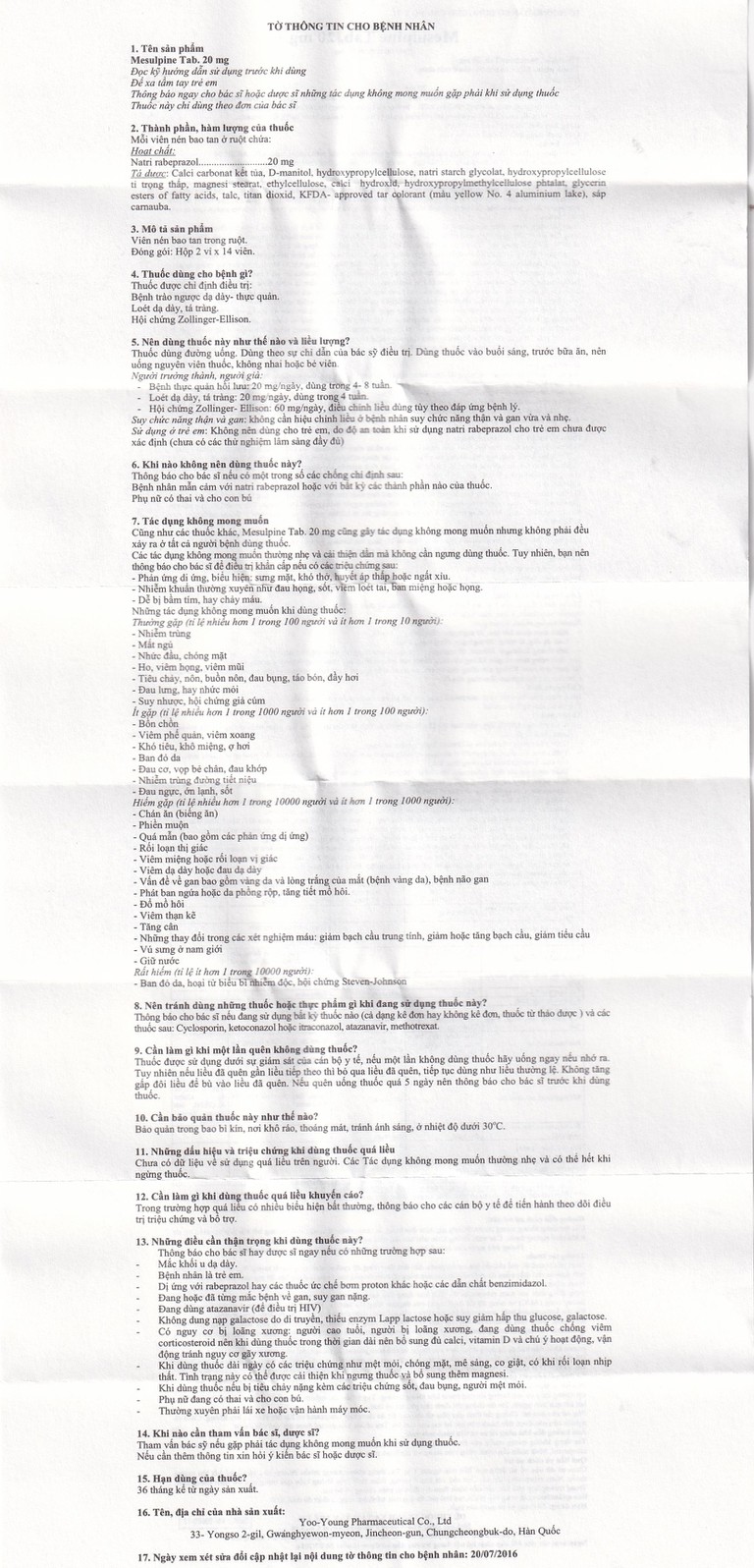 Cách dùng Viên nén Mesulpine 20mg