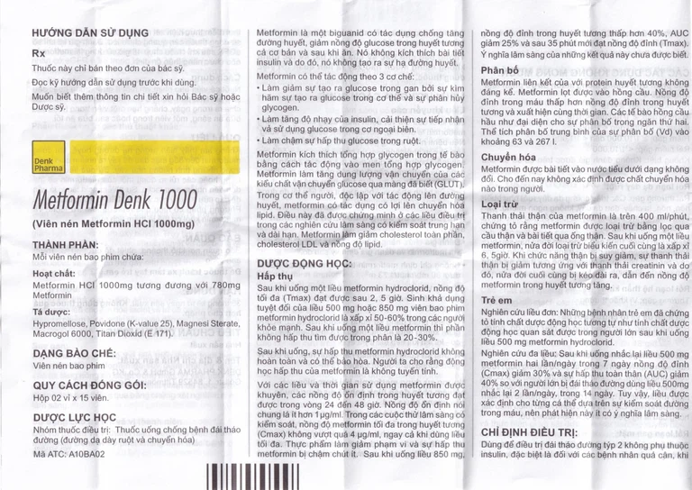 - Dùng để điều trị đái tháo đường type 2 không phụ thuộc insulin, đặc biệt đối với bệnh nhân béo phì khi chế độ ăn kiêng và tập thể dục không đủ kiểm soát đường huyết thích hợp. Metformin Denk được chỉ định cho người lớn, vị thành niên và trẻ em trên 10 tuổi.