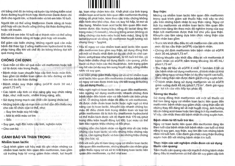 Dùng ở bệnh nhân lớn tuổi: Vì tiềm năng giảm chức năng thận ở người già, nên chỉnh liều Metformin Denk 1000 dựa trên chức năng thận. Vì lý do này, cần thiết đánh giá thường xuyên chức năng thận.