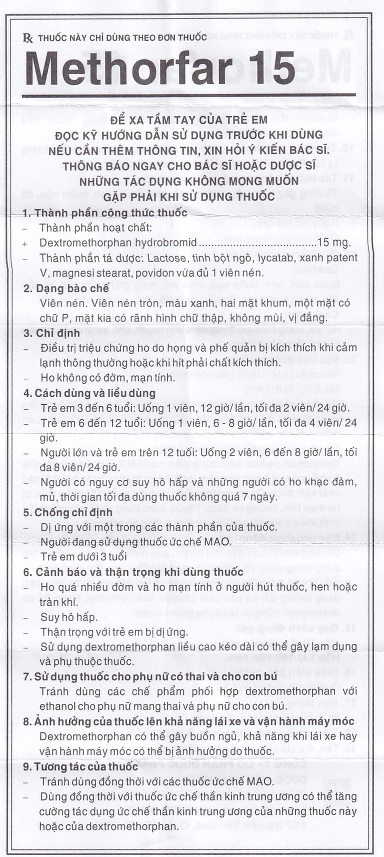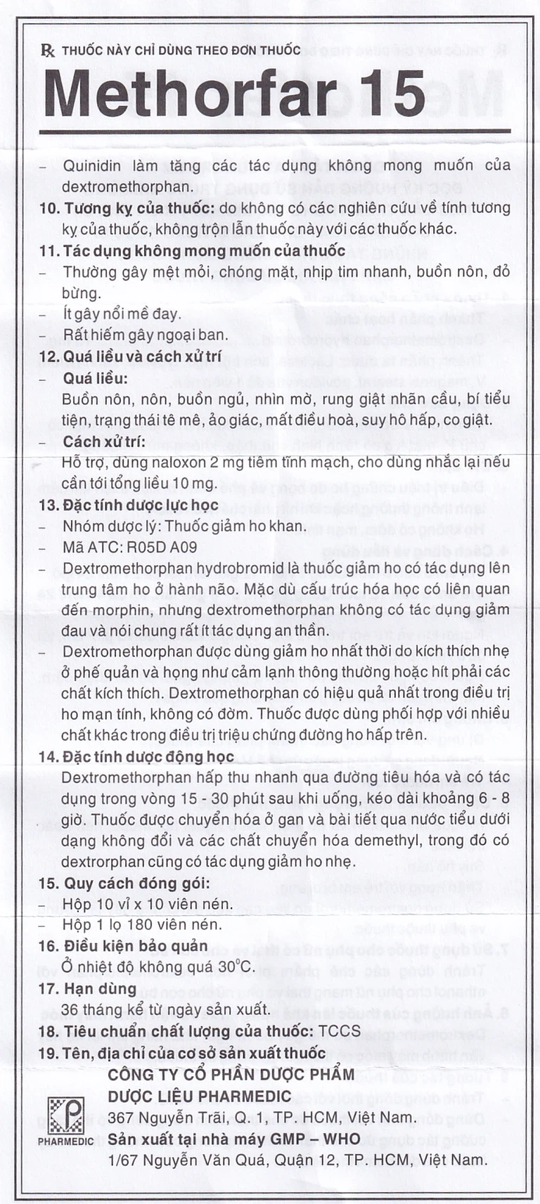 Khi sử dụng thuốc Methorfar 15, bạn có thể gặp các tác dụng không mong muốn (ADR).