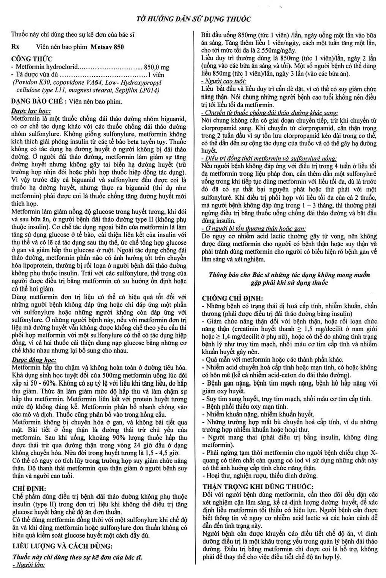 - Có thể dùng metformin đồng thời với một sulfonylurea khi chế độ ăn và khi dùng metformin hoặc sulfonylurea đơn thuần không có hiệu quả kiểm soát glucose huyết một cách đầy đủ.