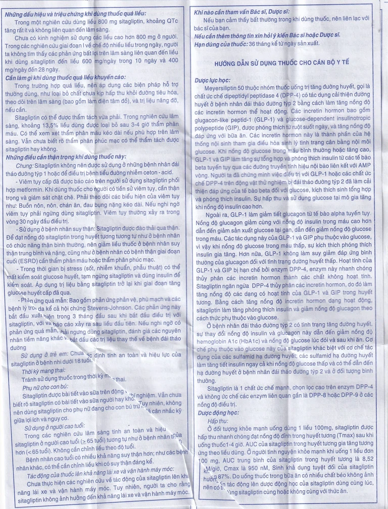 Khi dùng Meyersiliptin 50 kết hợp với sulfamid hạ đường huyết, có thể xem xét dùng sulfamid hạ đường huyết liều thấp hơn nhằm giảm nguy cơ hạ đường huyết do sulfamid hạ đường huyết.