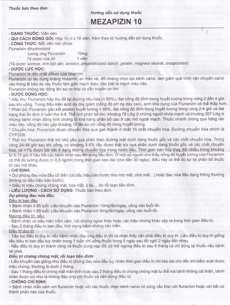Công dụng của Viên nén Mezapizin 10