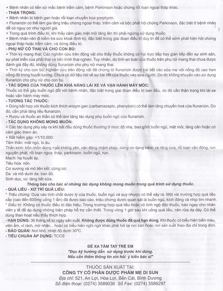 Bệnh nhân > 65 tuổi: Liều khuyến cáo Flunarizin 5mg/lần/ngày, uống vào buổi tối.