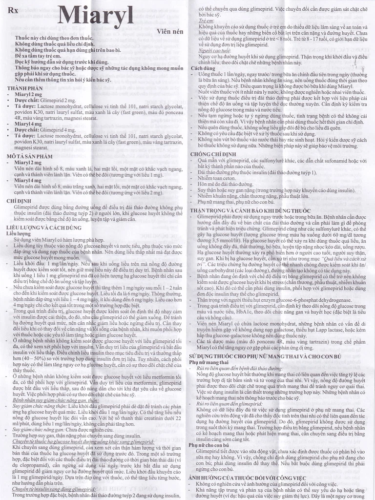 Công dụng của Viên nén Miaryl 2mg