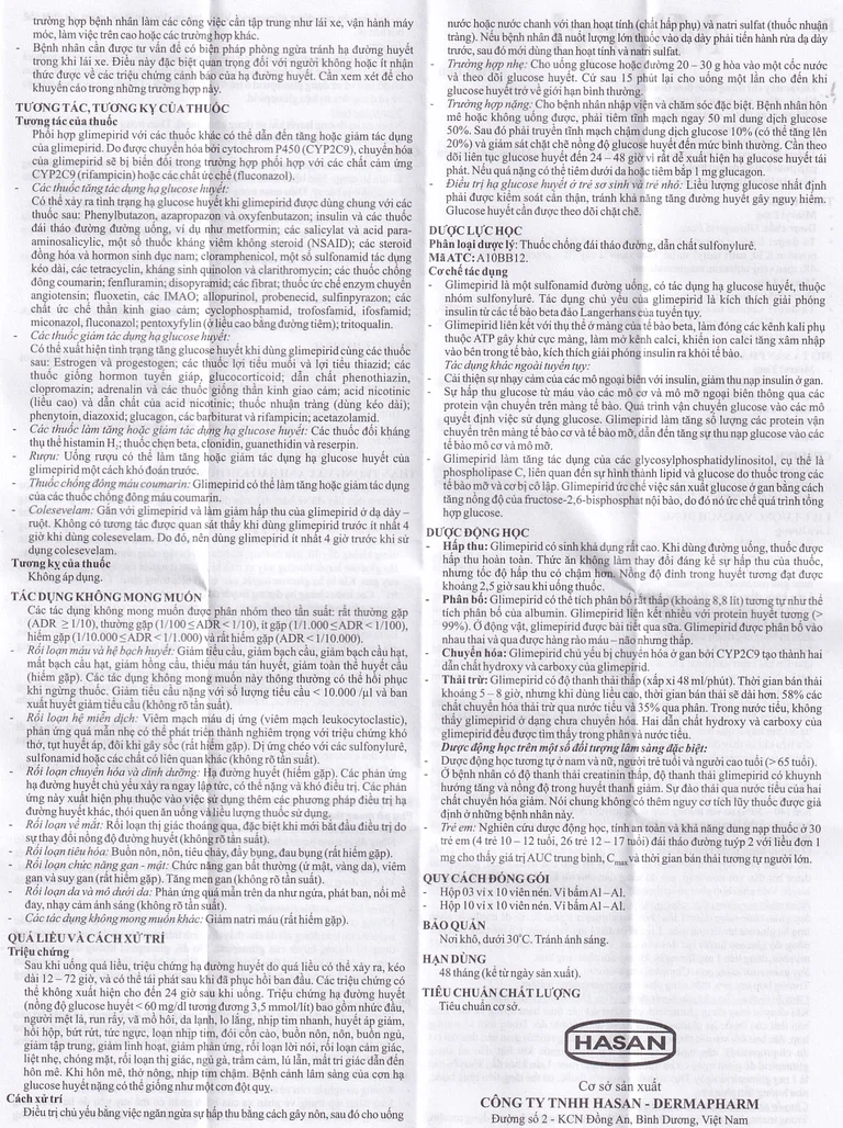 Cần phải giải thích cho bệnh nhân là tuy dùng thuốc, vẫn phải thực hiện nghiêm túc chế độ ăn uống và tập luyện hợp lý. Phải thông báo cho bệnh nhân và người nhà bệnh nhân về nguyên nhân, các biểu hiện và cách xử trí tai biến tụt glucose huyết. Glimepirid cũng như các sulfonyure khác có thể gây tụt glucose huyết. Bệnh nhân dinh dưỡng kém, suy thượng thận, suy gan, suy tuyến yên, đặc biệt là suy thận rất dễ tụt glucose huyết khi dùng glimepirid. Khi tụt glucose huyết, phải tiến hành như mục “Quá liều và xử trí”.