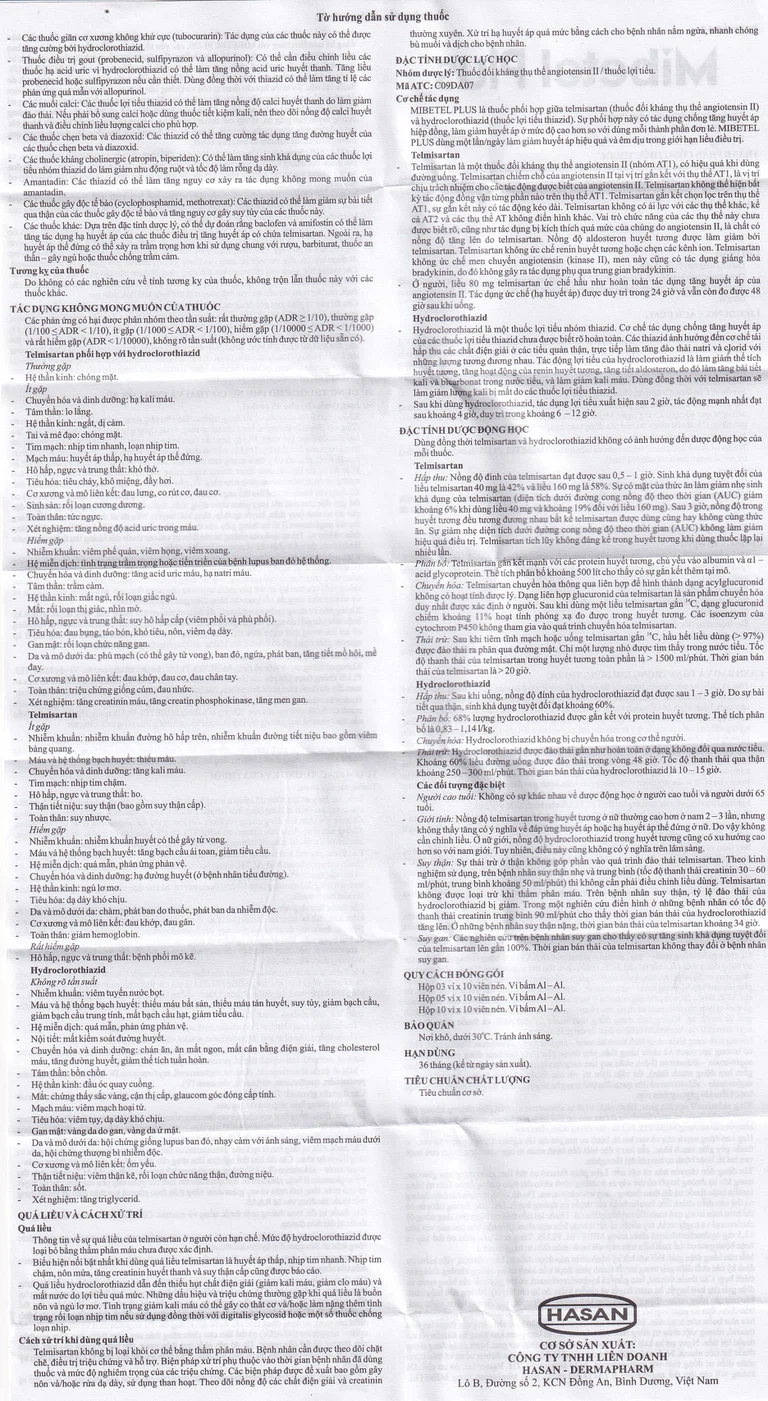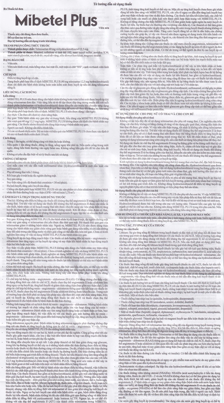 - Dạng thuốc phối hợp liều cố định Mibetel Plus (40mg telmisartan/12,5mg hydroclorothiazid) được chỉ định cho bệnh nhân không hoàn toàn kiểm soát được huyết áp nếu chỉ dùng telmisartan riêng lẻ.