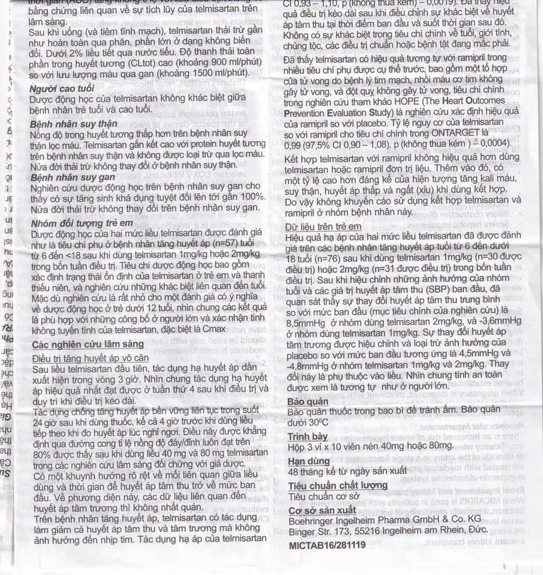 Viên nén Micardis 40mg Boehringer điều trị tăng huyết áp vô căn (3 vỉ x 10 viên)