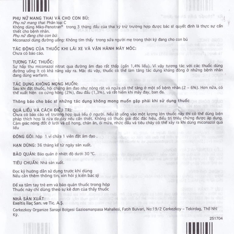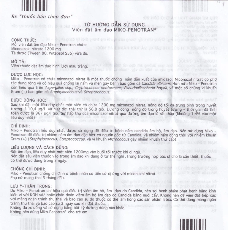 Viên đặt âm đạo Miko-Penotran 1200mg là sản phẩm của Exeltis Ilac San, thành phần chính Miconazol Nitrat, là thuốc Miko-Penotran 1200mg dùng để điều trị điều trị nấm Candida âm đạo.