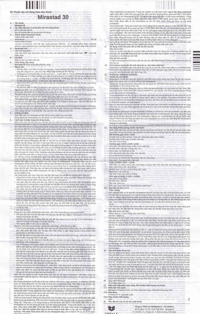 Trước khi sử dụng thuốc Mirastad 30 bạn cần đọc kỹ hướng dẫn sử dụng và tham khảo thông tin bên dưới.