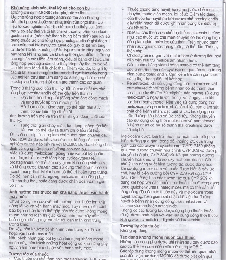 - Không dùng MOBIC cho bệnh nhân từng có dấu hiệu hen phế quản tiến triển, polyp mũi, phù mạch hoặc nổi mày đay sau khi dùng acid acetylsalicylic hoặc các thuốc chống viêm không steroid khác.