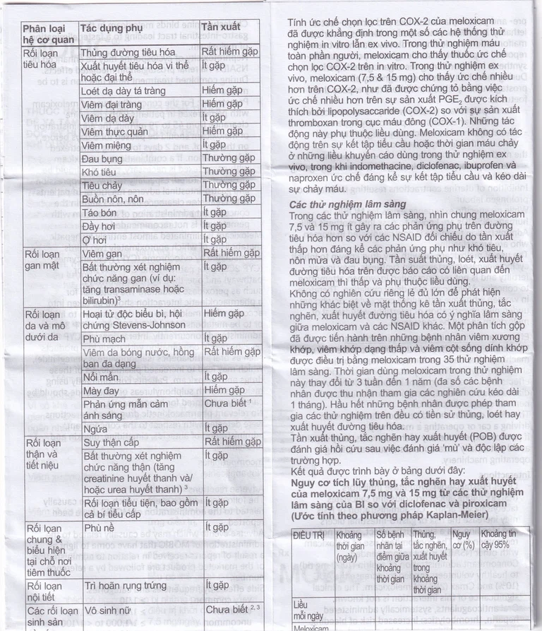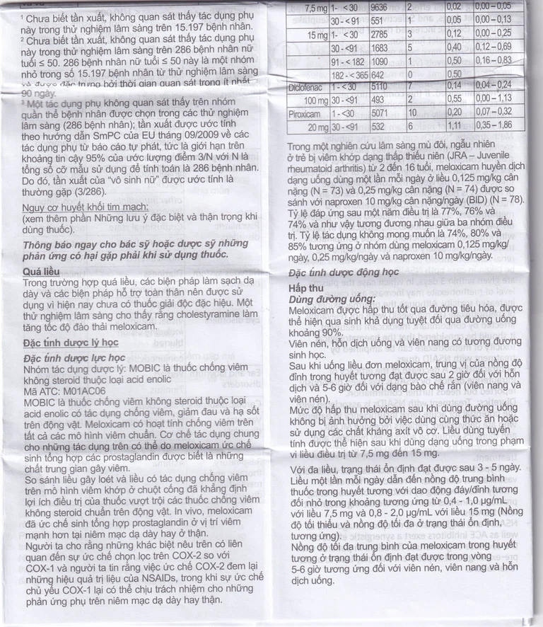 Mobic làm tăng thoáng qua transaminase huyết thanh hoặc các thông sô khác của chức năng gan. Trong đa số các trường hợp thấy sự tăng nhẹ trên giới hạn bình thường và thoáng qua. Nếu sự bất thường đáng kể hoặc kéo dài, cần ngưng dùng MOBIC và tiến hành các xét nghiệm theo dõi.