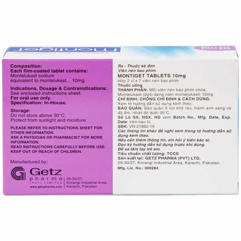 Cách dùng Viên nén Montiget 10mg