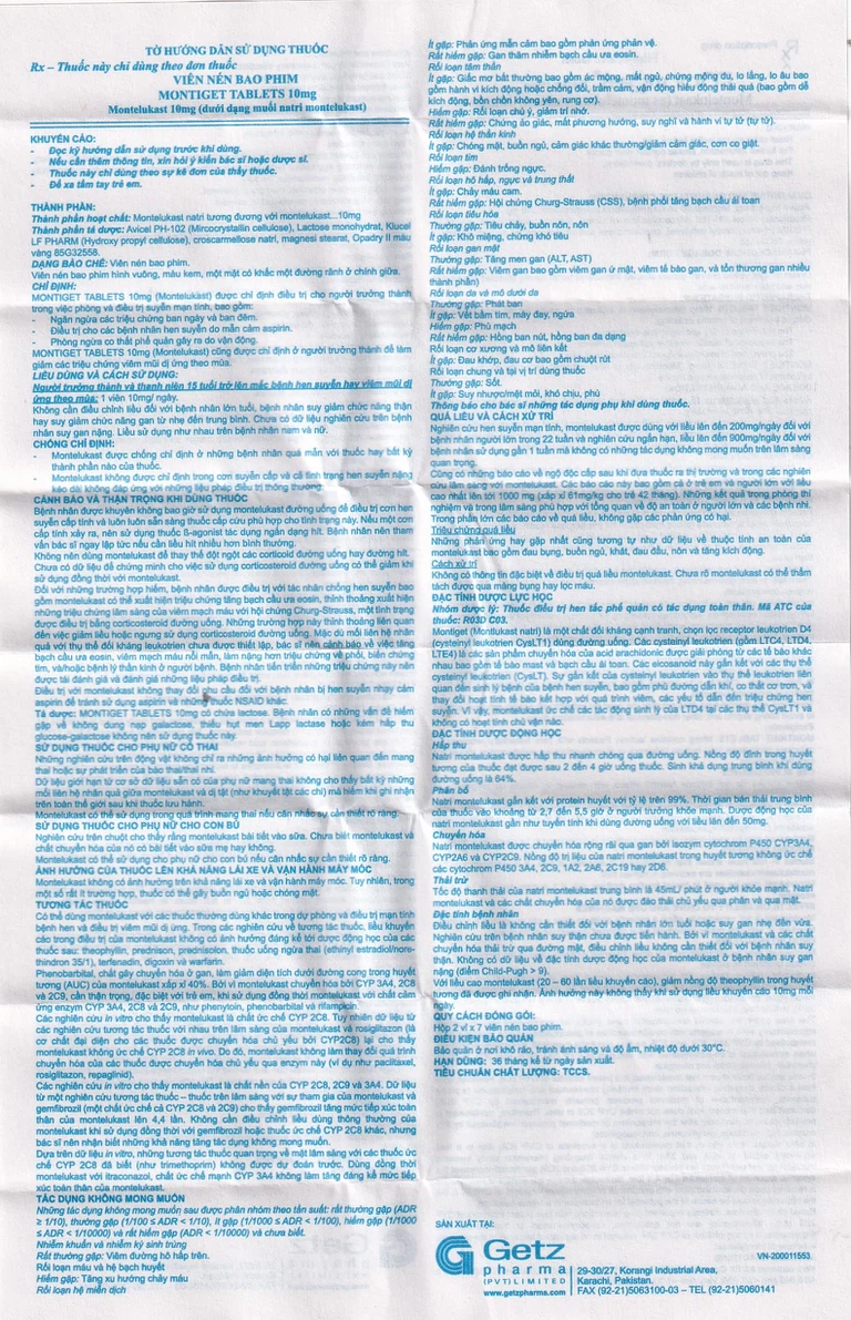 Thuốc Montiget Tablets 10 mgdùng đường uống.