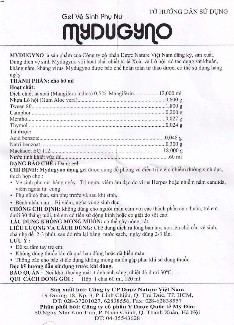 Thành phần của Gel vệ sinh phụ nữ Mydugyno
