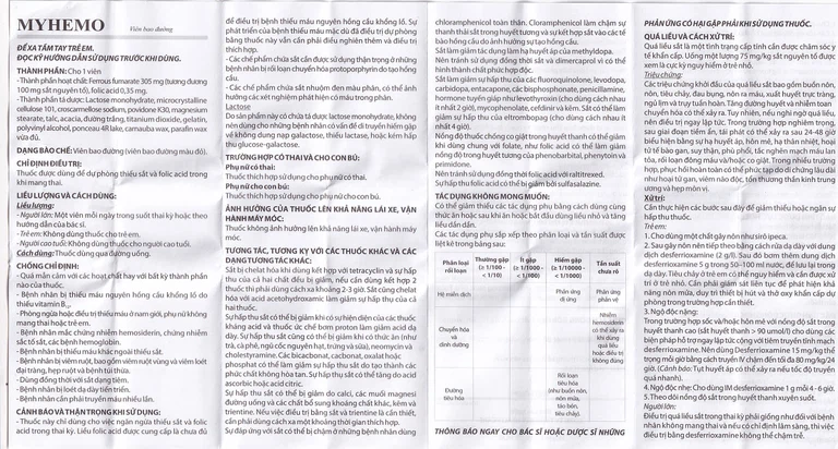 Thuốc Myhemo dùng để dự phòng thiếu sắt và folic acid trong khi mang thai .