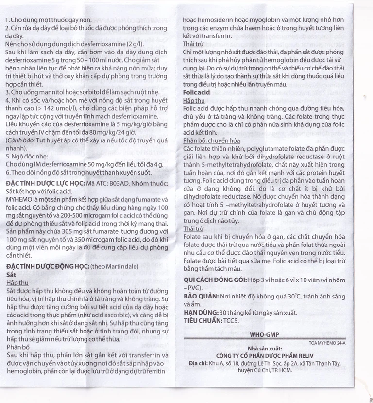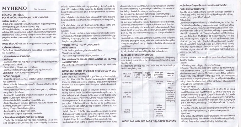 MYHEMO là một sản phẩm kết hợp giữa sắt dạng fumarate và folic acid. Có bằng chứng cho thấy liều dùng hàng ngày 100 mg sắt nguyên tố và 200-500 microgam folic acid có thể dùng để dự phòng thiếu sắt và folic acid trong thời kỳ mang thai.