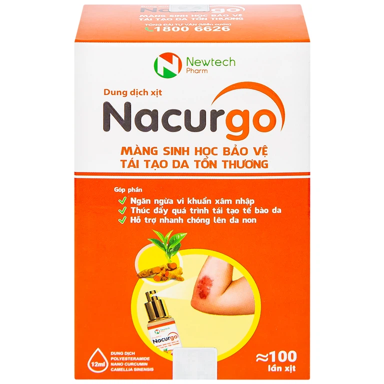 Dung dịch xịt Nacurgo màng sinh học bảo vệ, tái tạo da tổn thương (100 lần xịt)