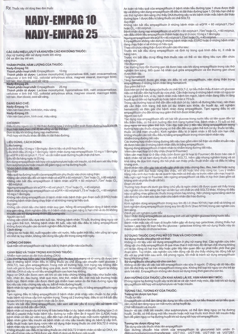 Thuốc Nady-Empag 10 chỉ định điều trị cho người lớn bị đái tháo đường type 2 không kiểm soát được đường huyết khi đã thực hiện kèm theo chế độ ăn uống và tập thể dục: